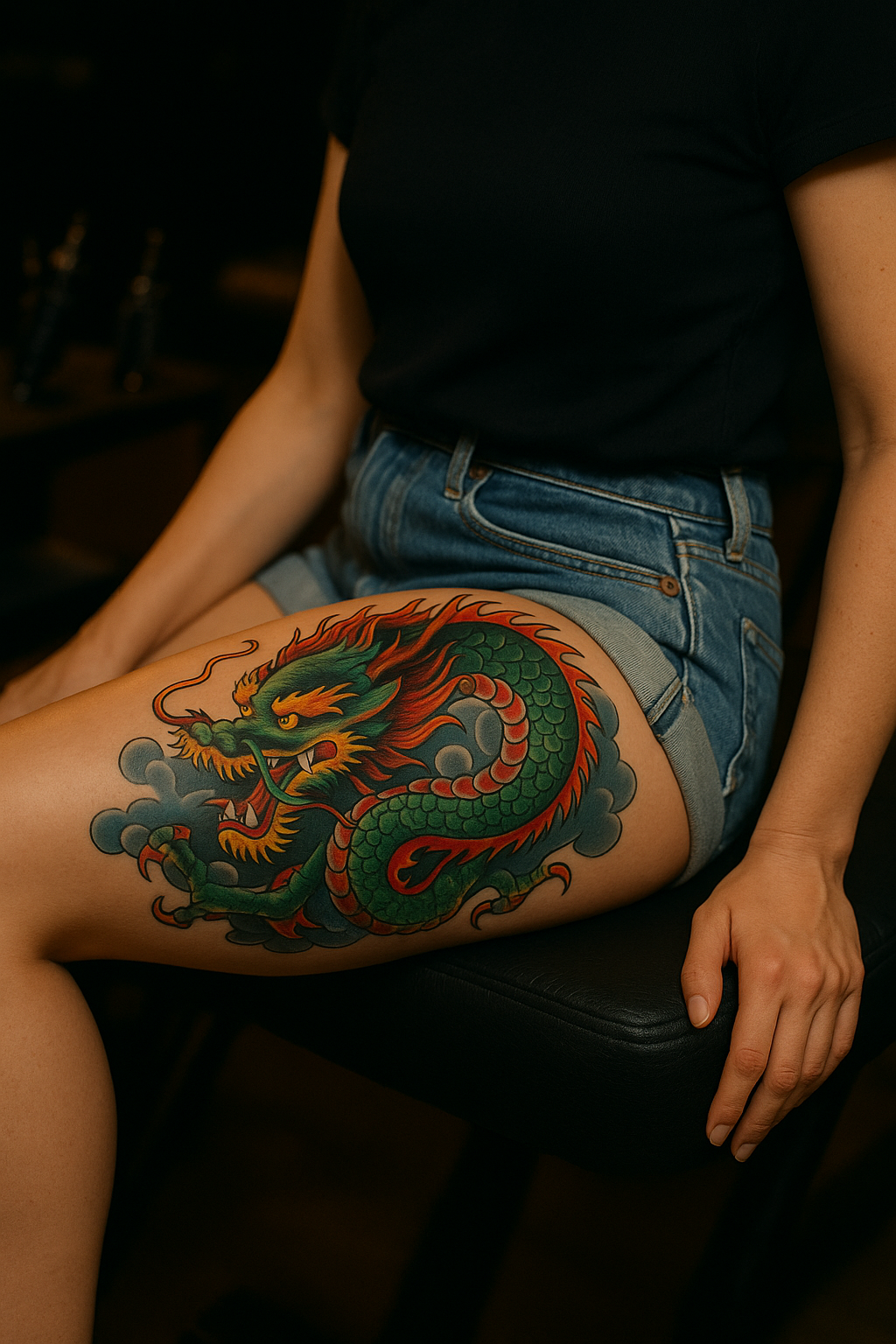 Reinige es vorsichtig, nutze geeignete Tattoo-Pflege (pH-neutrale Salbe) und vermeide direkte Sonneneinstrahlung. - Kann ich mein bestehendes Tattoo mit einem Drachenmotiv covern lassen?